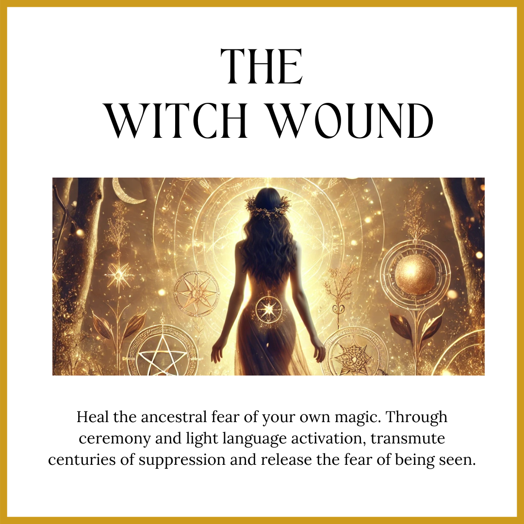 The Witch Wound runs deep; it’s the inherited fear of being seen, powerful, and fully expressed in your magic. This $11.11 mini-course guides you to recognize how this wound shows up in your voice, your visibility, and your ability to trust your own wisdom. Through a Witch Archetype Restoration Ceremony and Light Language Activation, you’ll transmute collective pain into confidence and reclaim your sacred power.
