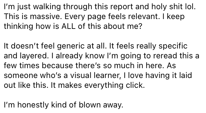 Everything is organized, explained, and customized using your exact birth details, so you can understand how you’re wired without overwhelm.