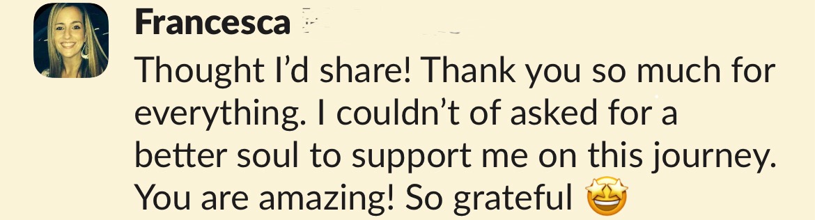 🤩 You'll receive personalized support tailored to your journey in the group chat and during our ceremony sessions. While this program doesn't include one-on-one support with me, the intimate group setting ensures you'll feel as though you're getting that individual attention and care!