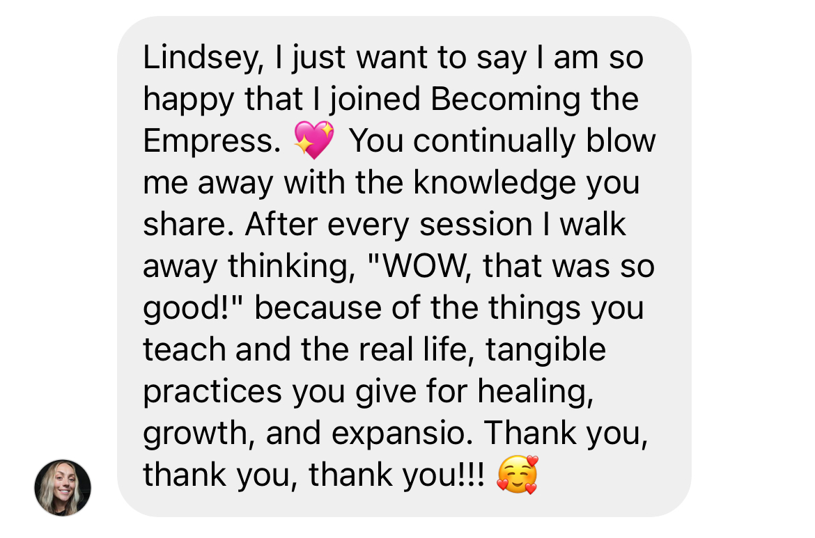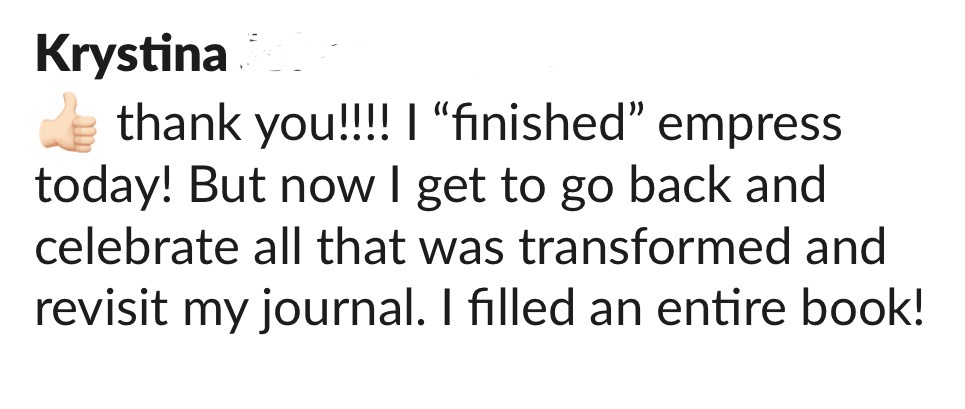👸 By the end of the experience, you won't be the same person you were when you started. You will be the royal, Empress, version of yourself that you already are.